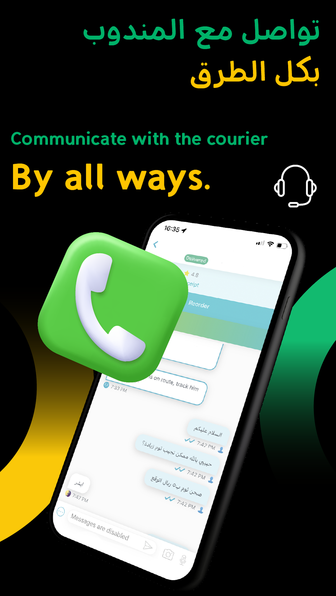 - Live und direkter Chat mit dem Fahrer.