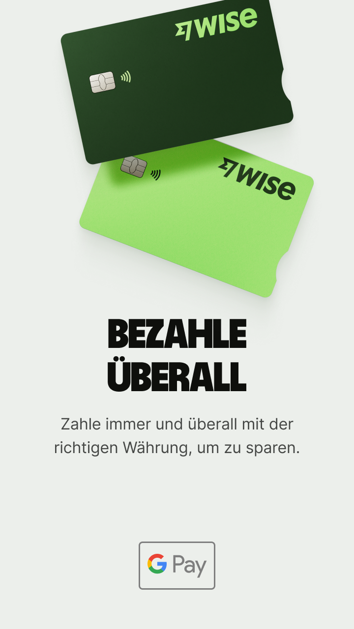 Mit Wise kannst du dein Geld auf der ganzen Welt für Überweisungen oder Zahlungen verwenden, in beliebig vielen Währungen halten und Einzahlungen empfangen, als hättest du ein Konto vor Ort – all das ohne versteckte Gebühren und zum echten Devisenmittelkurs.