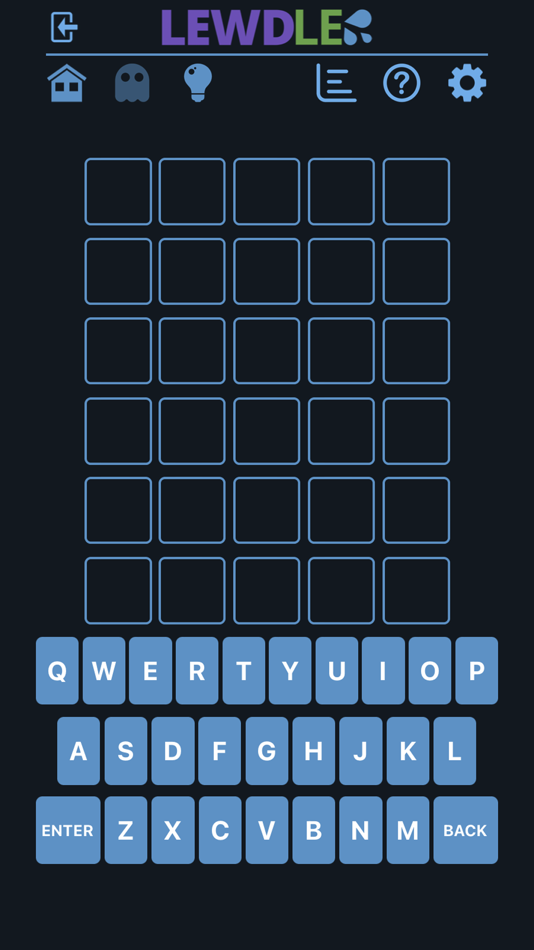 Errate das LEWDLE in 6 Runden. Jede Vermutung muss ein gültiges unanständiges Wort sein. Drücken Sie zum Senden die Eingabetaste. Nach jedem Raten ändern die Kacheln die Farbe, um anzuzeigen, wie nah Sie an Lewdle waren.